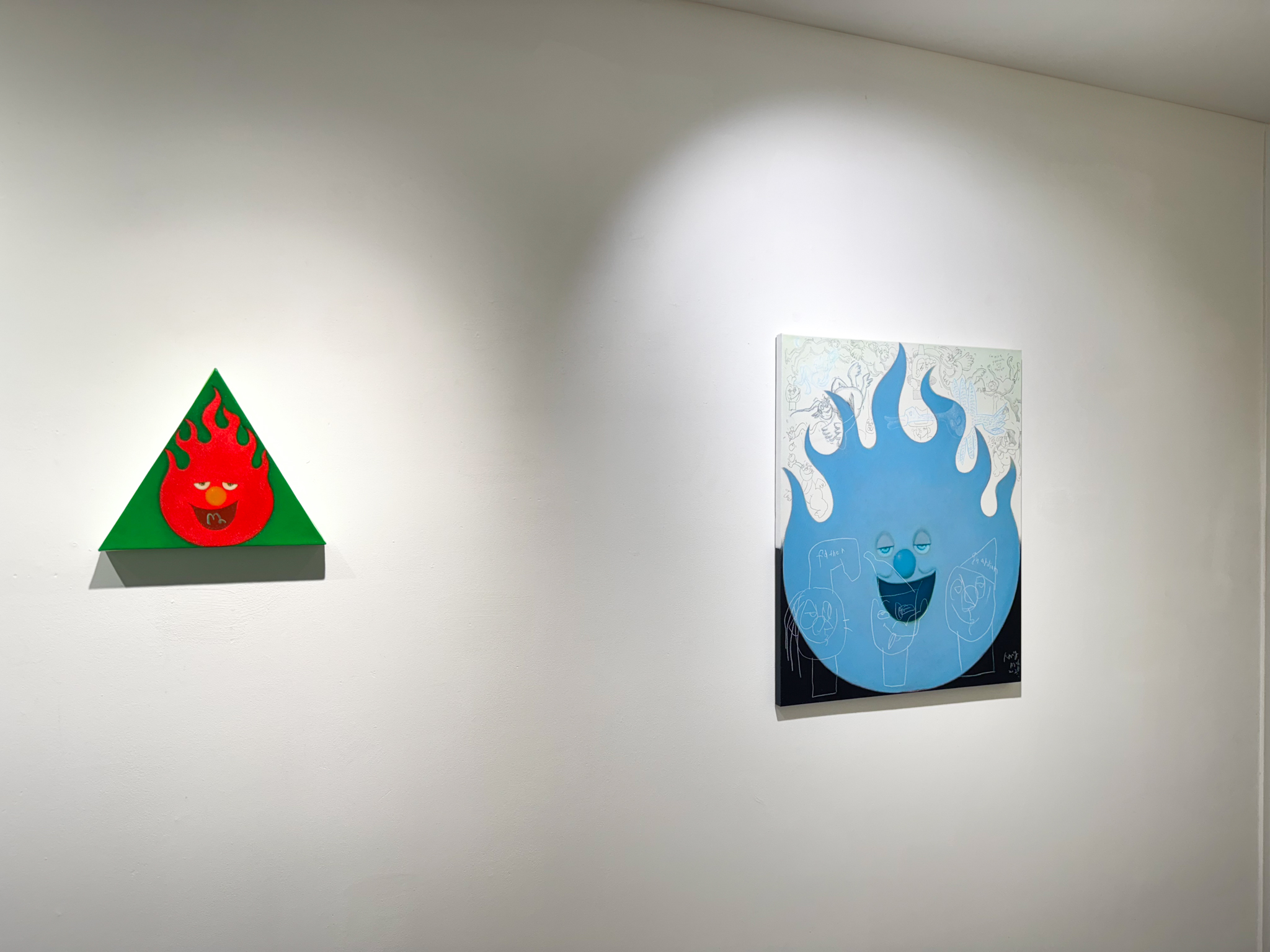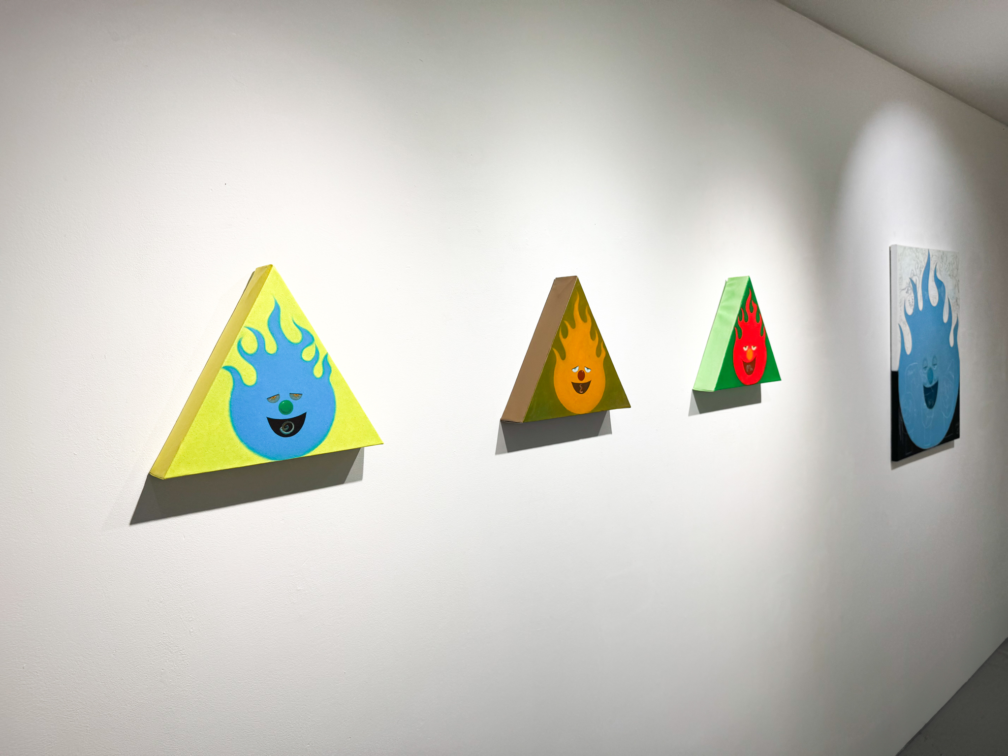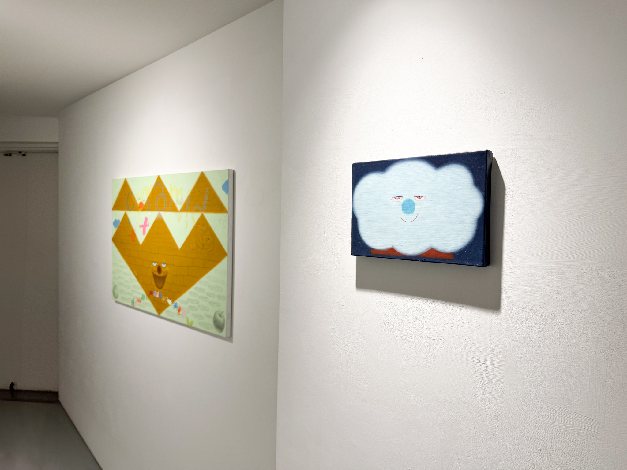 이전 작업에서는 작업실의 먼지, 연탄재, 흙 등을 섞어 아크릴물감을 두껍게 올려 마띠에르가 많이 느껴지는 과감한 터치가 보였다면, 이번 신작에서는 보다 매끄럽고 밀도감 높은 표현을 시도하였다. 메이크업하듯 두들겨서 캔버스 천의 결 사이를 촘촘히 채우는 형식으로 매끈하고 쫀쫀한 배경을 만들어 내고 그 위로 동심을 일깨우는 다양한 소재들의 드로잉이 등장하여 이야기를 이어간다.