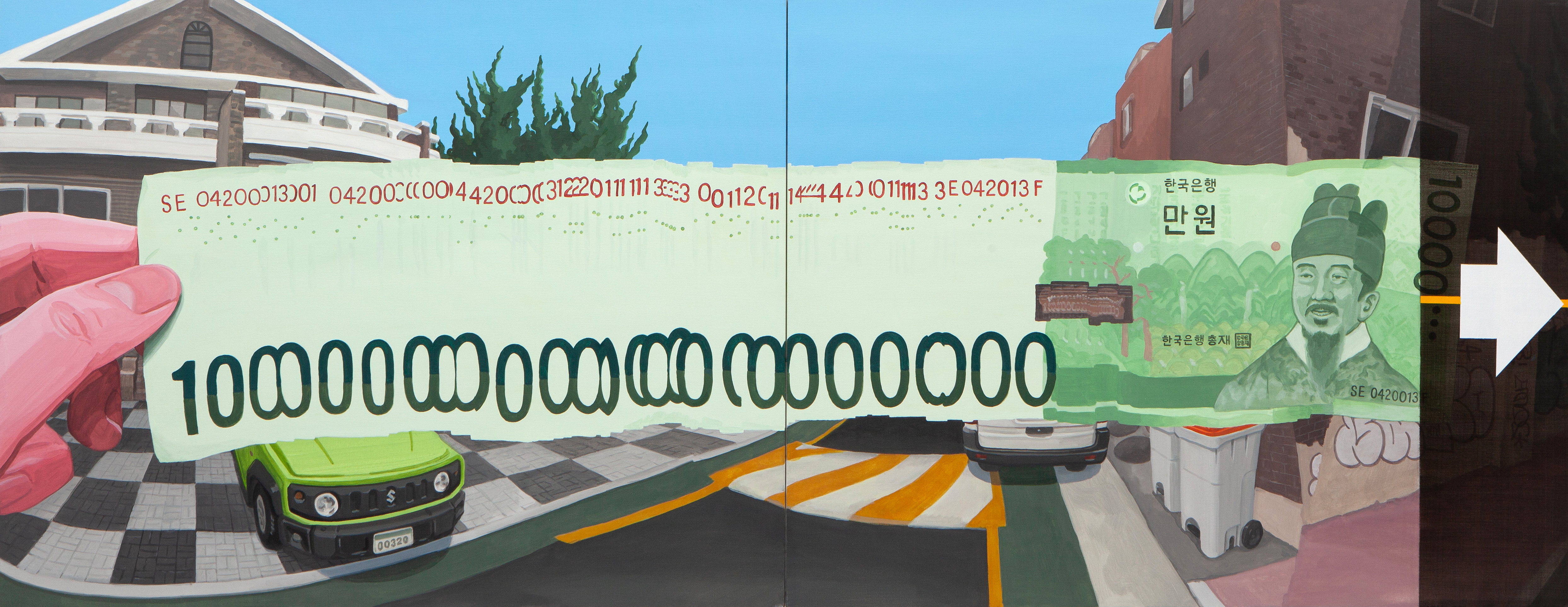 순이지는 일상 속 사물과 인물을 재해석해 현대사회의 모순과 부조리를 유머러스하면서도 날카롭게 드러낸다. 그의 화면은 알록달록한 색감과 천진한 캐릭터, 과장된 몸짓으로 가득하지만, 그 안에는 자본주의, 권력, 계급, 종교, 죽음 등 무거운 주제를 향한 통찰이 담겨 있다. 블랙코미디적 정서는 ‘죽음’과 같은 주제를 담담하게 다루는 방식에서 특히 두드러지며, 이는 외면된 삶의 부정성을 회복하고 현실을 정면으로 마주하려는 작가의 태도이기도 하다. 어린 시절 만화에 영향을 받아 판화를 공부한 후, 거리예술과 수작업 드로잉을 통해 자신만의 시각 언어를 구축했다. 최근 ‘키오스크’ 작업에서는 거리 뉴스 가판대를 활용해, 정보 과잉 속에서 무심히 지나친 현실을 다시 보게 만드는 장치를 선보이며, 관객이 자신의 삶을 다시 바라보고 성찰하도록 돕는다. 그의 작업은 웃음을 매개로 사회적 메시지를 전달하며, 부조리한 현실을 생생하게 포착한다.