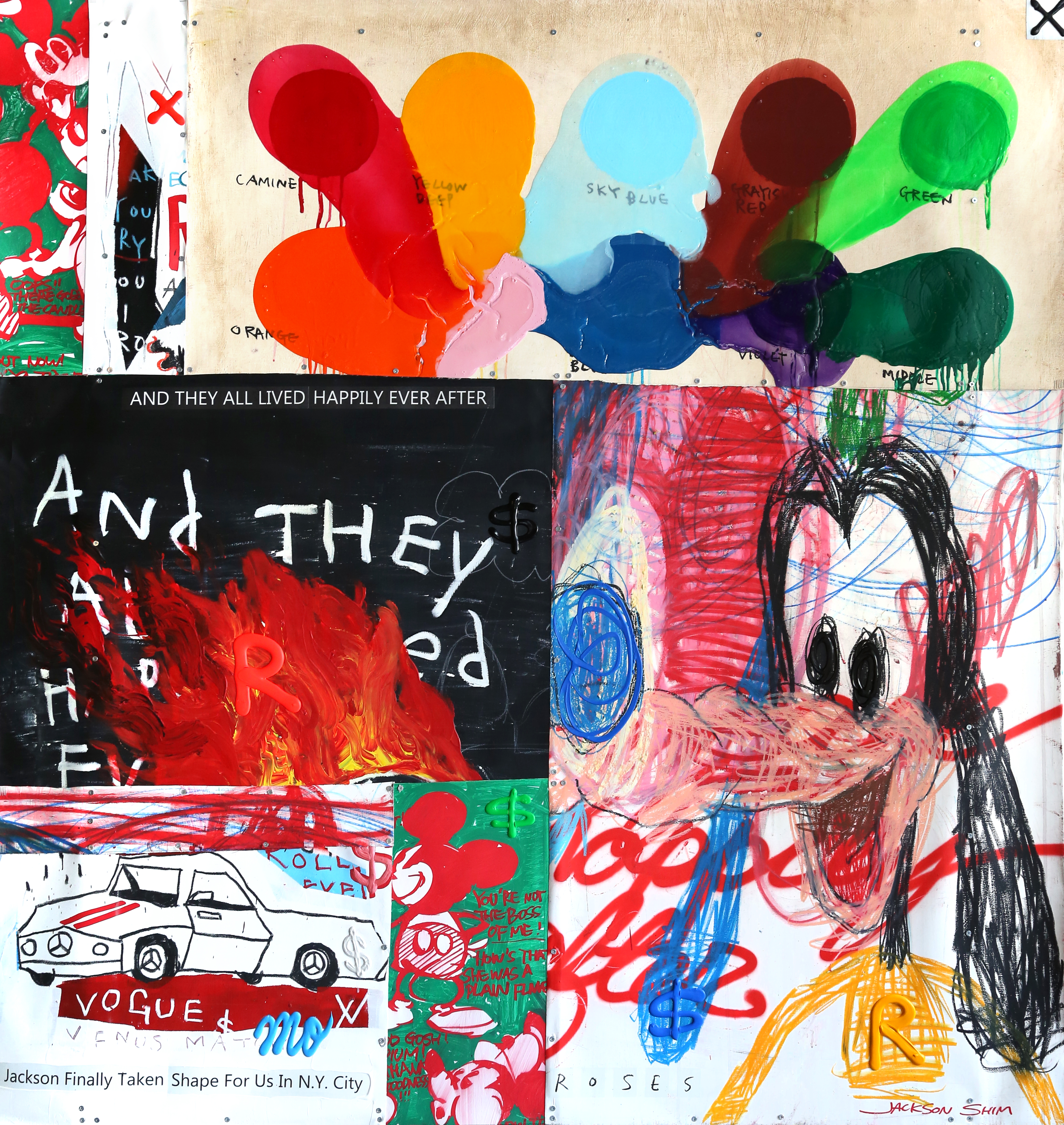 잭슨 심은 동심의 감수성과 현대 자본주의 사회의 상징을 결합해 역설적인 조화를 만들어낸다. 그의 작업은 어린 시절의 순수한 시선과 현실적 감각이 공존하며, 빠르게 소비되는 시대 속에서도 예술이 울림을 줄 수 있다는 믿음을 담고 있다. 대중문화 속 익숙한 캐릭터와 상징을 단순히 반복하지 않고, 순수와 욕망, 동경과 현실이 충돌하는 장면을 통해 밝고 유쾌한 외피와 무거운 질문을 동시에 전달한다. 10주년 프로젝트 《GREATMAN》 시리즈(2025–)는 지난 작품들을 조각으로 나누어 하나의 화면에 재구성한 작업으로 “시련의 조각들이 모여 하나의 아름다움으로 완성된다”는 메시지를 전한다. 그는 ‘소년의 마음’을 끝까지 지키며, 관객의 감각과 기억을 환기하고 따뜻한 울림과 오래 남는 여운을 선사한다. 잭슨 심의 작업은 단순한 회상이 아닌, 오늘날에도 여전히 동심을 살아 있게 만드는 실천으로, 현대 사회에서 순수와 현실이 만나 만들어내는 조화의 가능성을 탐색한다.